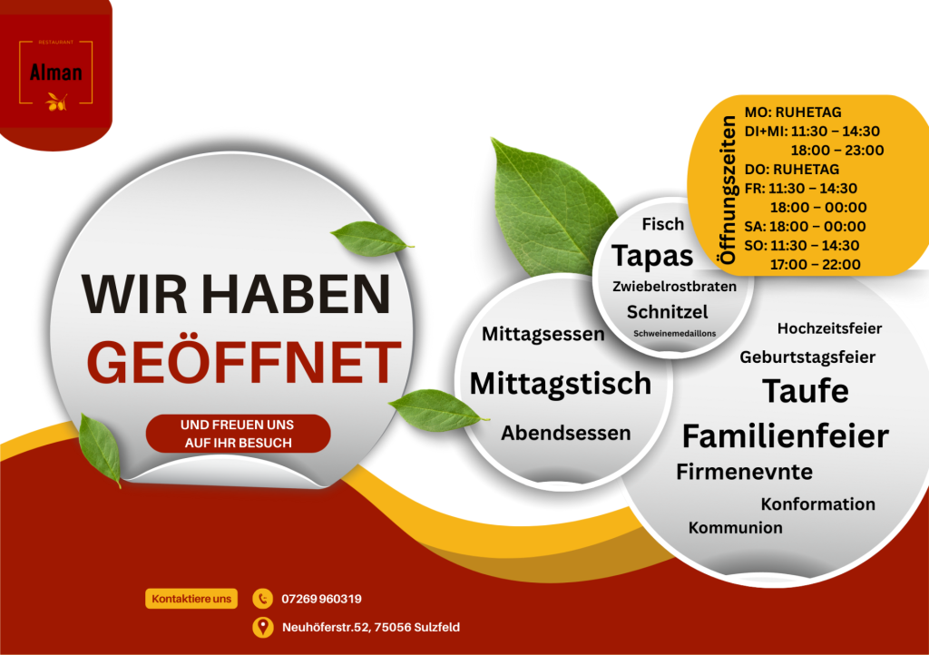 Begeben Sie sich mit uns auf eine genussvolle Entdeckungsreise durch die Aromen unserer Küche. Bei Alman verbinden wir traditionelle Rezepte mit frischen Ideen – so entstehen Gerichte, die vertraut schmecken und doch immer wieder überraschen.
